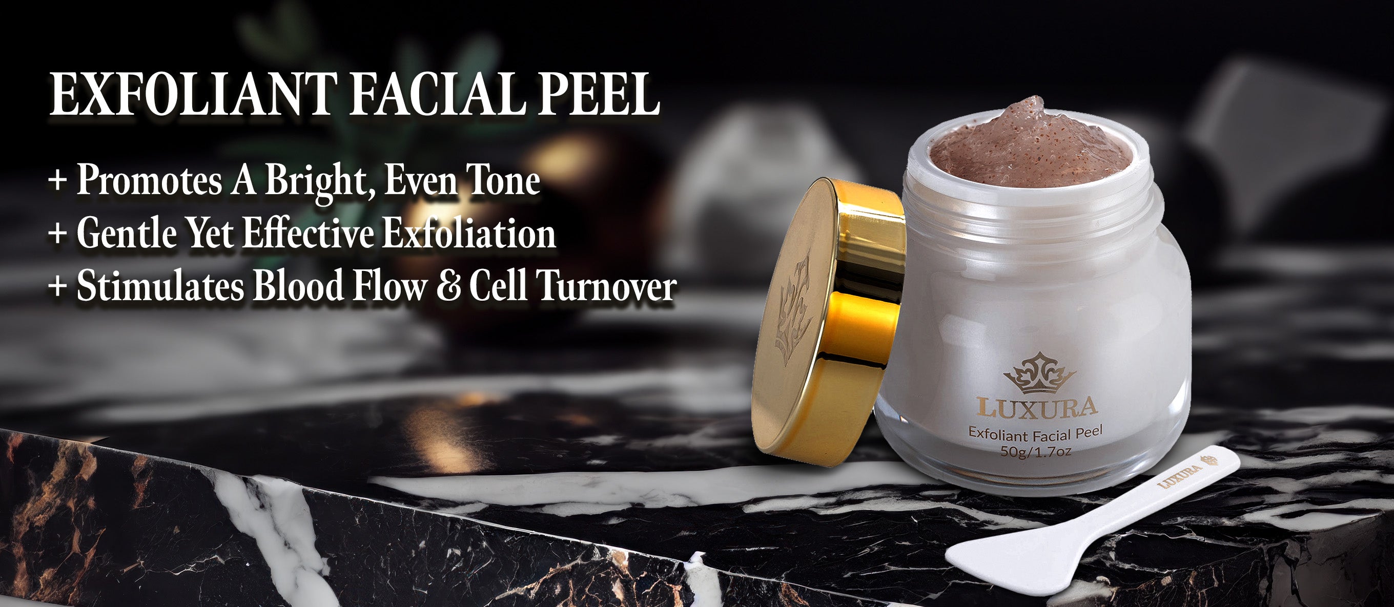LUXURA's Exfoliant Facial Peel is a meticulously formulated skincare solution that harnesses the power of advanced exfoliation science to revitalize and renew the skin.