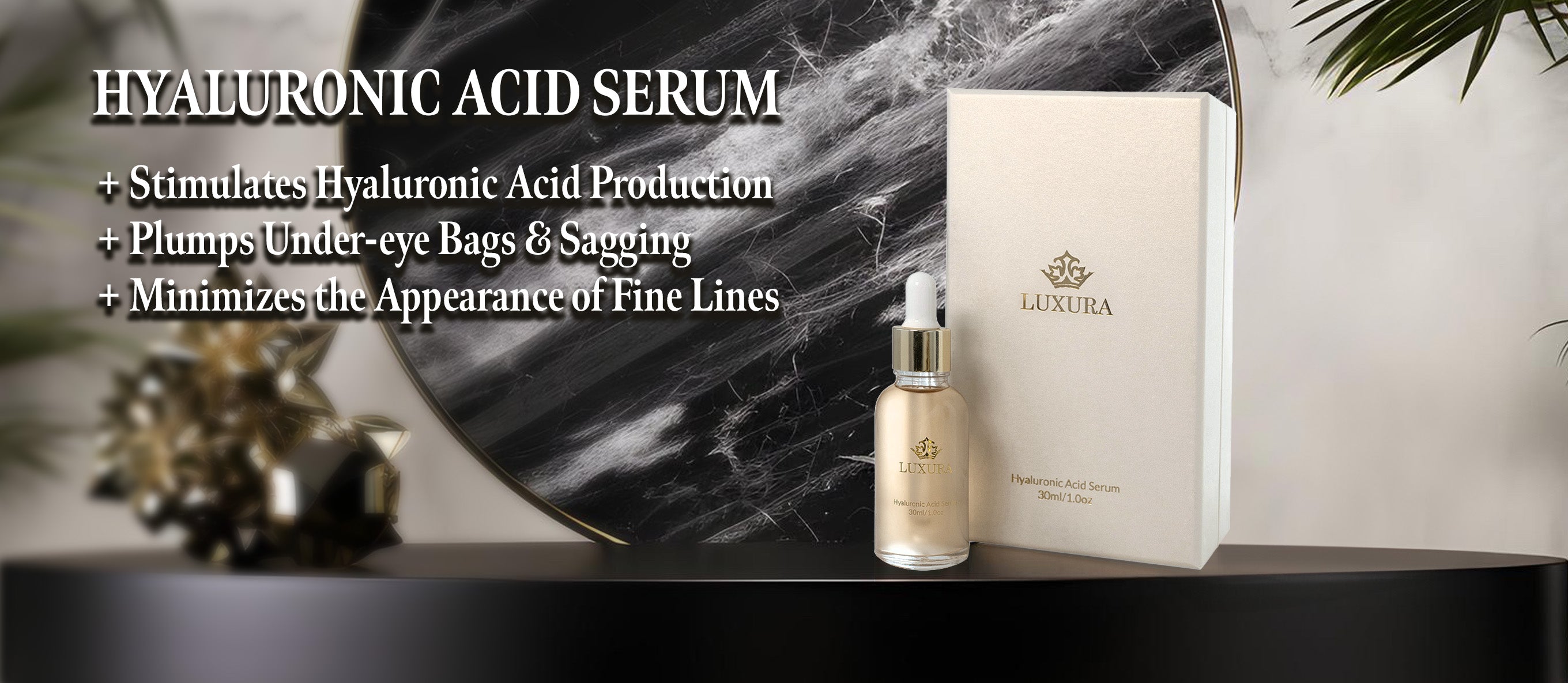 Embark on a journey of deep skin revitalization with LUXURA HYALURONIC ACID SERUM. A masterful blend of science and hydration, designed to deeply penetrate and quench your skin's deepest thirst, enriched with Collagen and high-potency Hyaluronic Acid.